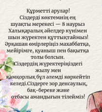 Сіздерді 8 наурыз — Халықаралық әйелдер күнімен шын жүректен құттықтаймыз!