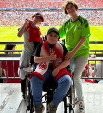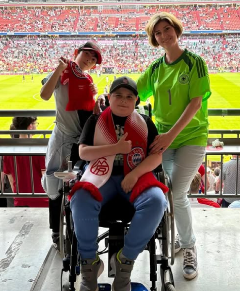 Алекс — наш подопечный с мышечной дистрофией Дюшенна. Сейчас он живёт в Германии вместе с мамой, Еленой, которая раньше представляла наш фонд в Актау. Даже переехав за границу, она остаётся на связи с сообществом и с радостью рассказывает о жизни сына