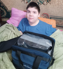 Голованов Андрей, мальчик из детского дома которому мы ведем сбор на откашливатель, благодаря усилиям спонсора получил коляску, которая ему очень сильно нужна